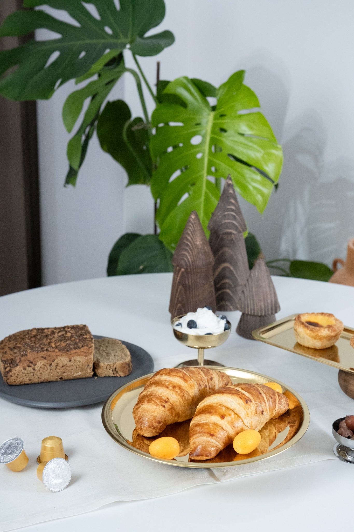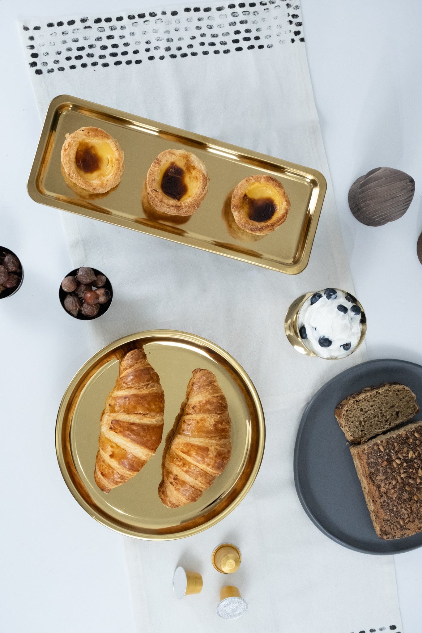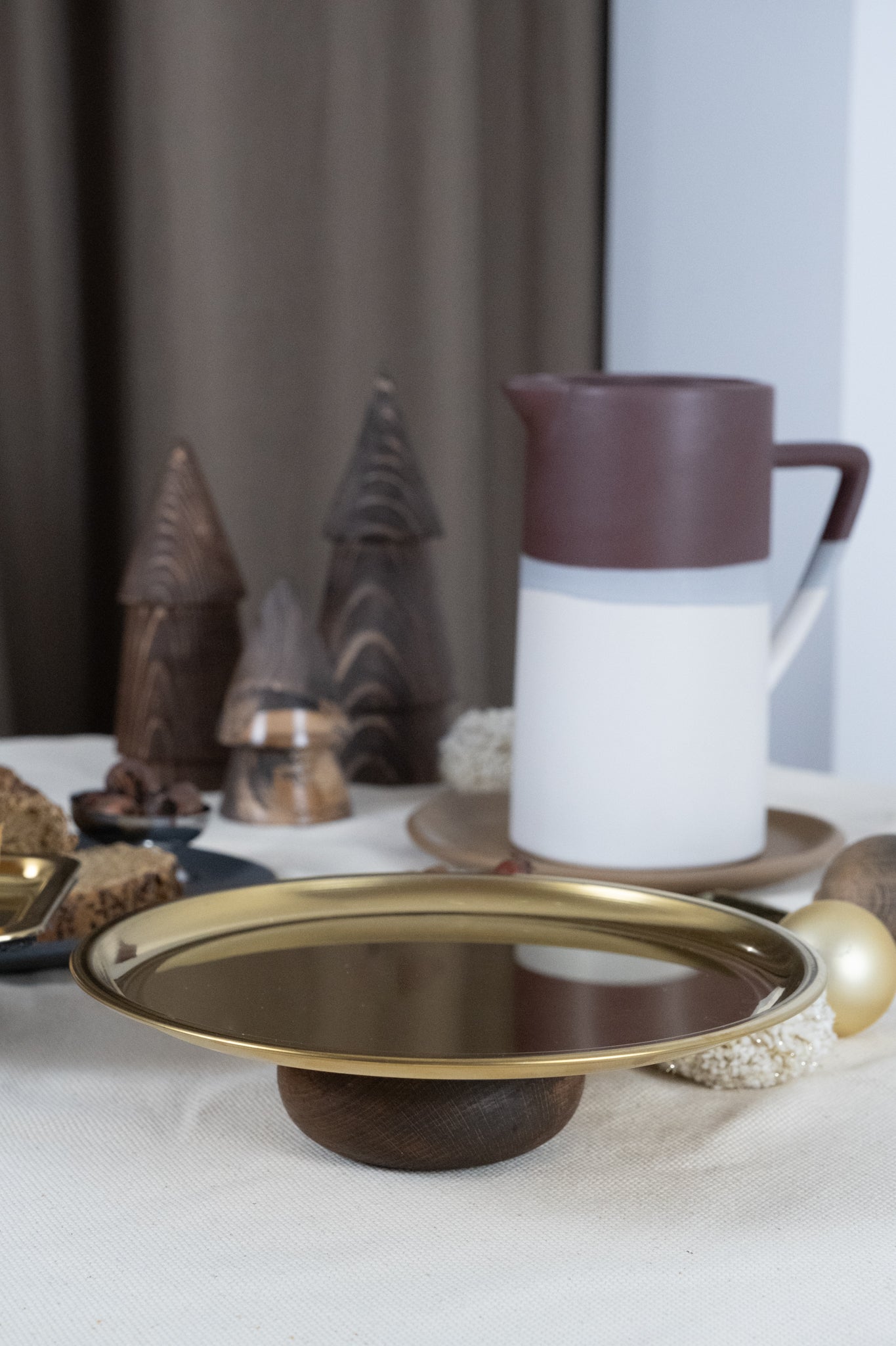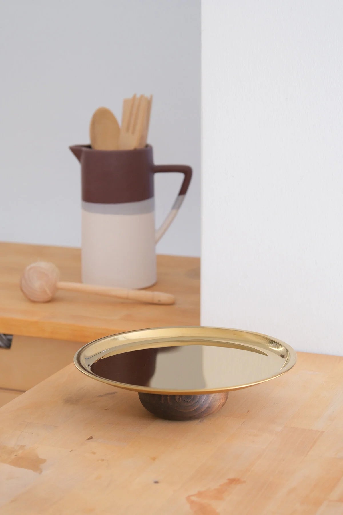Tasarım: Ahşap taban ve altın renkli yuvarlak tabak kombinasyonu